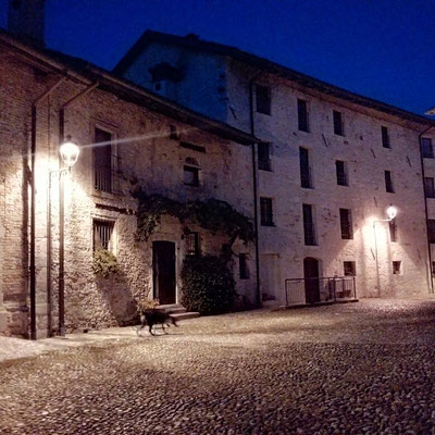 Nachdem wir den Einladungs-Grappa der Wirtin gekippt hatten (mein angestrengtes, laienhaftes Italienisch fand sie demnach lustig oder sie erbarmte sich einfach meinereiner...*lol*) machten wir einen Verdauungs-Spaziergang retour durchs nächtliche, vollmondbeleuchtete Schloss. soo romantico!