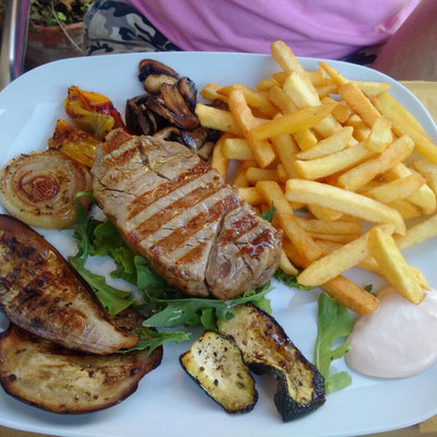 Die Osteria 'Rainbow' gleich ausserhalb der Schlossmauern ist uns schon die letzten beiden Male aufgefallen... diesmal entkam sie unseren kulinarischen Fängen nicht. :-)