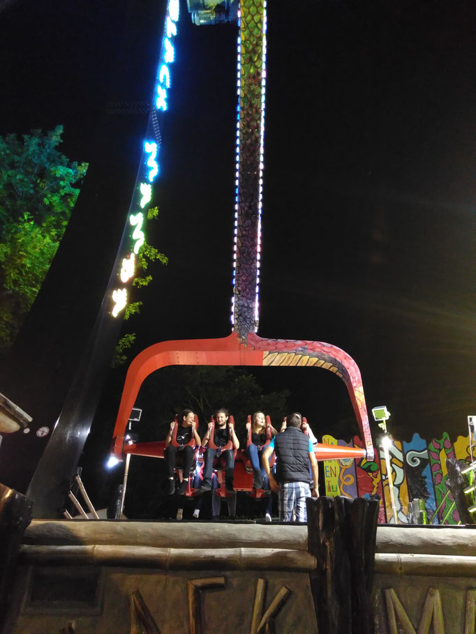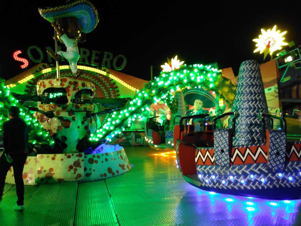 Im 'Sombrero' zum Beispiel. Oder auf der großen Looping-Hochschaubahn. (Die ist übrigens ziemlich happich: € 8.50 pro Fahrt - Danke Richard, für die Einladung!)