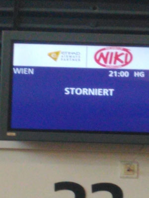 Und eine sympathische, junge Frau uns offenbarte, daß man einen Rückflug nach Wien heute nicht mehr für uns parat hätte.