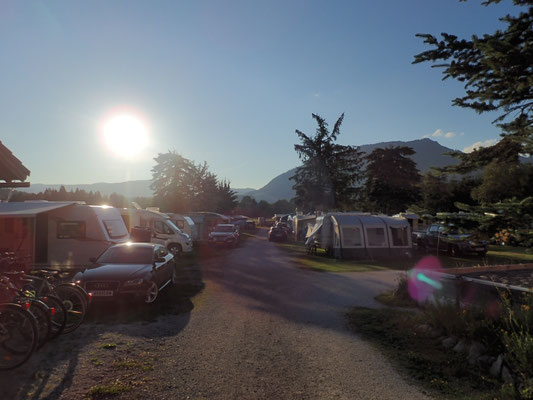 Wir haben auch den letzten Platz per Reservierung zwei Tage davor ergattert - das junge deutsche Pärchen muss ihr Zelt auf Risiko 'am Weg' auf einem Autoparkplatz aufbauen. Alles ausgebucht!