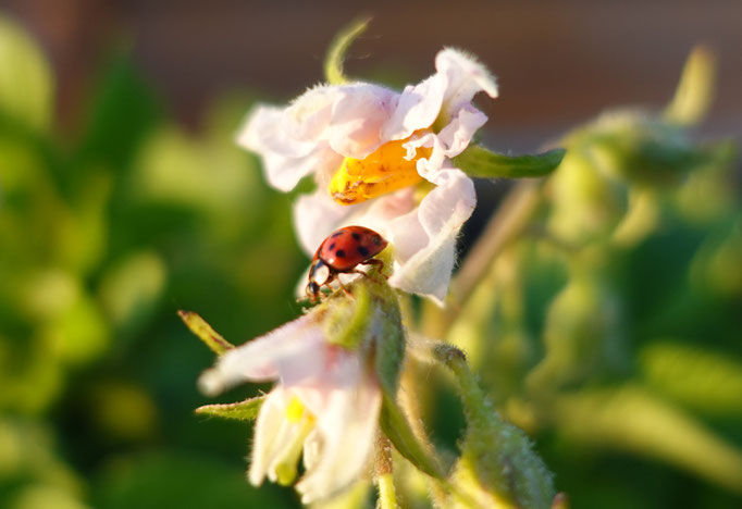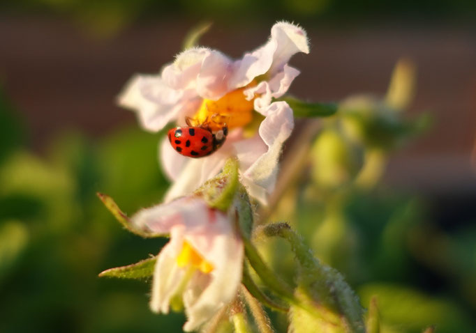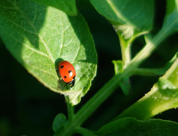 Denn sie halten mir so gut wie alle Schädlinge von den jungen Pflanzentrieben - bis jetzt hab ich nur drei Erdäpfelkäfers gefunden. *klopfaufholz*