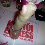 Eine interessante Sache war auch der geeiste Pudding mit Kokosraspeln und Palmherzen sowie der Vietnameische Kaffee mit Kondensmilch ;-) Ungewöhnlich aber lecker.