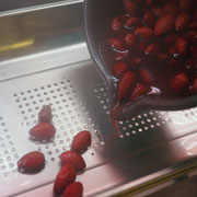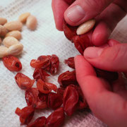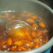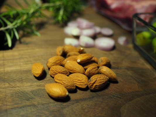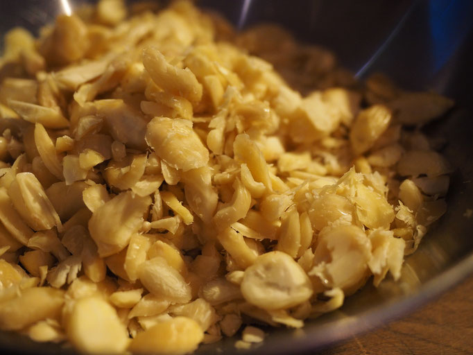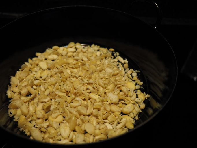 Die Mandeln haben wir kurz im kochenden Wasser blanchiert - dann ging die Haut ganz easy herunter.
