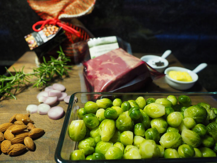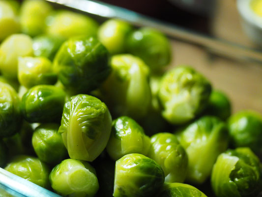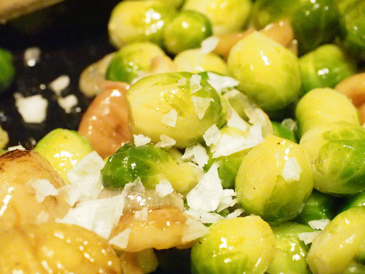 Die gut geputzten und gewaschenen Kohlsprossen (bei mir dauerte das für 2 Kilo fast 2 Stunden...) entweder im Dampfgarer oder im Salzwasser für ein paar Minuten halbdurch