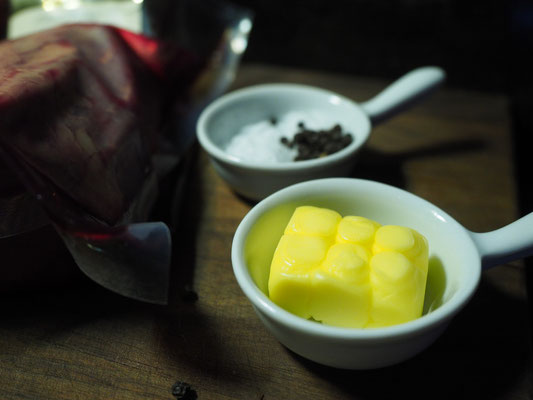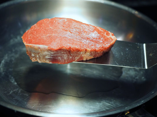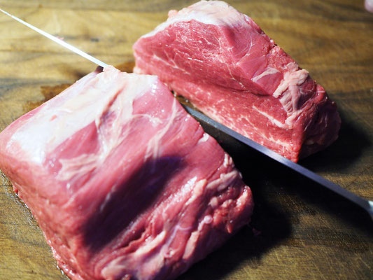 Also... schon beim Aufschneiden war ich von der Qualität der 'Labonca'-Rinderfilets begeistert: Super Marmorierung, sehr zart und fast kein Silberhäutchen oder gar Sehnen. TOP!