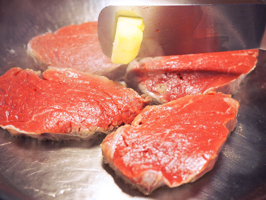 Die richtige Zubereitung von Steaks habe ich von meinem Mann gelernt - der ist der allerbeste Steakmacher wo gibt auf der Welt. :-)