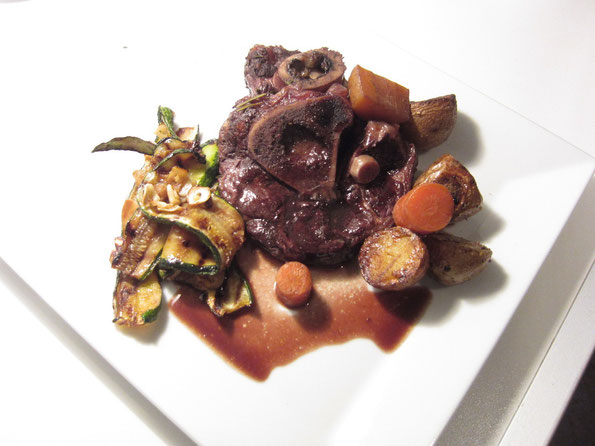 Ossobuco - Kalbsstelzen - sind ja eigentlich ein sehr unterschätztes Fleisch: Im Vergleich sehr günstig im Preis, kann man ein herrliches Schmorgericht daraus zaubern. Das Fleisch ist wunderbar zart und gibt einen tollen Saft. Mit knusprigen Erdäpfeln und gebratenem Gemüse ein sehr feines Gericht!
