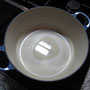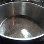 Wenn das Fleisch weichgegart ist, gießt man den Saft in einen Topf ab und lässt den Bräter bei 50 Grad im Ofen, um das Fleisch warmzuhalten.