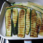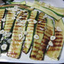 Die Zucchini in einer Pfanne mit etwas Olivenöl auf beiden Seiten anrösten und zuletzt den Knoblauch mitbraten. Zum Warmhalten in den Ofen schieben.