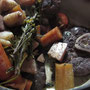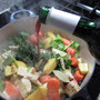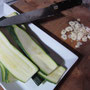 Währenddessen kann man die Erdäpfeln halbweich kochen und die Zucchini in Scheiben schneiden. Den Knoblauch grob hacken.