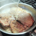 Leicht köcheln für ca. eine Stunde weichdünsten. Dazwischen etwas Suppenwürze oder fertigen Bratenfond dazugeben. Hin und wieder das Fleisch leicht bewegen, damit es nicht 'ansetzt'.