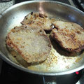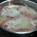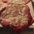 Die Rindschnitzel zuerst leicht salzen und pfeffern, danach mit Estragonsenf (ca.ein halber Teelöffel pro Seite) einstreichen und auf beiden Seiten mehlieren (mit Mehl bestäuben).
