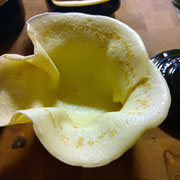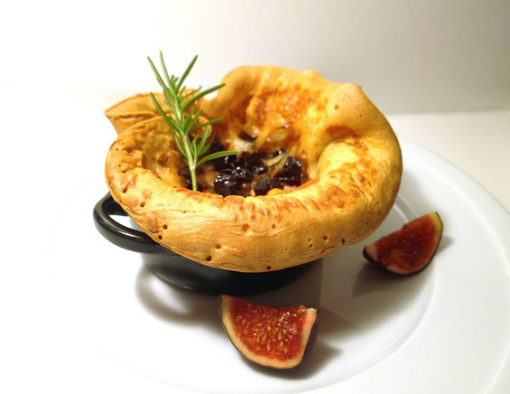 Hier habe ich experimentiert und der ursprüngliche Plan war, Blätterteig oder Mürbteig für die Schüsseln zu verwenden. Da ich vergessen hatte, den Blätterteig zukaufen (und der Tankstellen-Shop keinen hatte) und mir dann ein Mürbteig zu 'schwer' schien, schlug mir der Raini vor: Mach doch Crépes! Und weil ich ja sehr oft auf meinen Mann höre, hab ich's auch getan. *g*