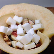 Jetzt kann man schon den Ofen auf 180 Grad vorheizen und mit dem Füllen der Crépeschüsselchen beginnen: