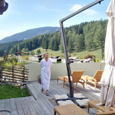 Dann gleich rein in den kuscheligen Bademantel und ab in die Wellness-Landschaft... :-)